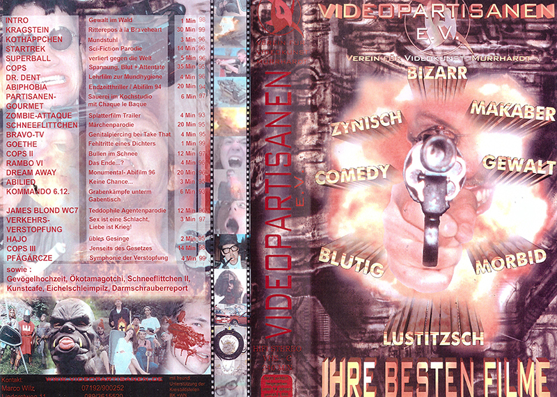 Und wie ging es nach 2000 weiter? Ich begann mein zweites Studium an der German Film School und somit war auch keine Zeit mehr für Partisanenfilme. Ideen gab es viele, aber Zeit und Motiviation fehlten. Das Rad hatte sich weitergedreht. Getroffen haben wir uns natürlich weiterhin und so sind die letzten Jahre immerhin ein paar spontane Handyvideos entstanden. Dieses Mal wurden aber gleich die Kinder mit eingespannt. Den Verein haben wir aus nostalgischen Gründen erst 2017 abgemeldet, bzw liquidiert wie das im Beamtendeutsch heißt. Sind die Partisanen tot? Nein, der kreative Fokus hat sich nur verlagert. 2004 gründeten etliche Partisanen den Kulturschock e.V. und unter diesem Namen haben wir seither sehr erfolgreich über 40 Mittelalterfeste in der Region veranstaltet und unsere Stettenfelsreihe gehört zu den beliebtesten Mittelaltermärkten Süddeutschlands. Als wegen Corona die Veranstaltungen ausfallen mussten, war wieder etwas Zeit und so konnte ich Material der vergangenen Märkte schneiden und mit dem "Coronagröhlen" entstanden sogar wieder zwei Musikvideos, bei denen wiederum u.a. einige Partisanen beteiligt waren. Alles auf unserem youtube Kanal zu finden : https://www.youtube.com/channel/UCkRp9Wt5cPcakepWKMkRPVQ Habe ich was vergessen? Ach ja, 2001 ist eine Bestof VHS entstanden und 2014 war endlich das ganze alte Material digitalisiert und es folgte eine Bestof DVD Box.